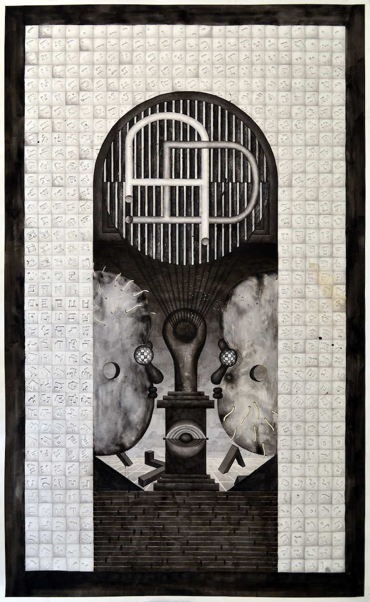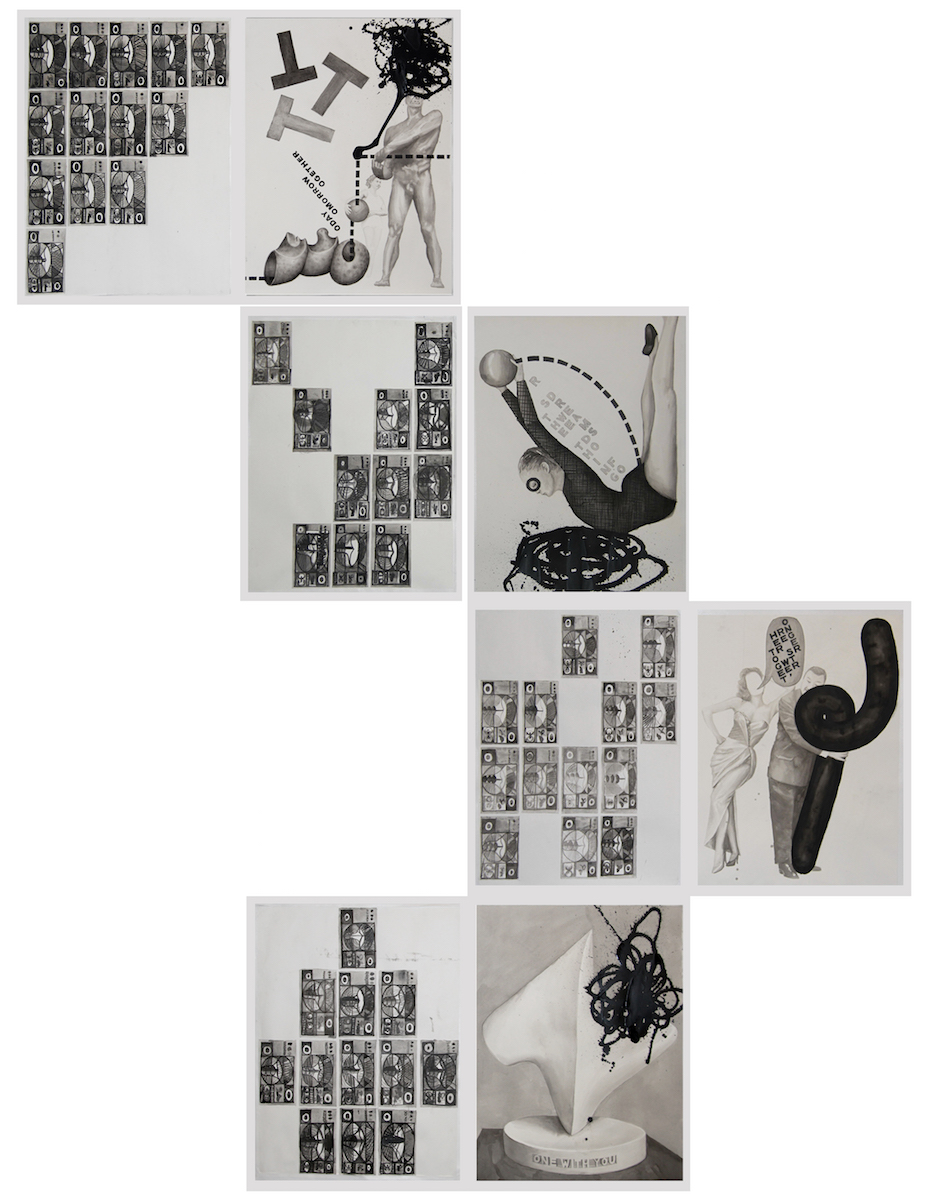Initial Public Offering OOOO (IPOOOOO) is composed of black ink drawings, video, sculpture and performance that present a fictional-futuristic agrarian-urban society. It is a new society split off from our own, initiated by the desire to overcome the cultural polarization that paralyzes our own. Through the study of Pierre Leroux’s ”Circulus”, in which equality and human manure were the two key elements of utopia, a new system of value is created. In the future, when all other forms of value have proved to be arbitrary and divisive, shit is the only thing left of provable productive force, uniting all.